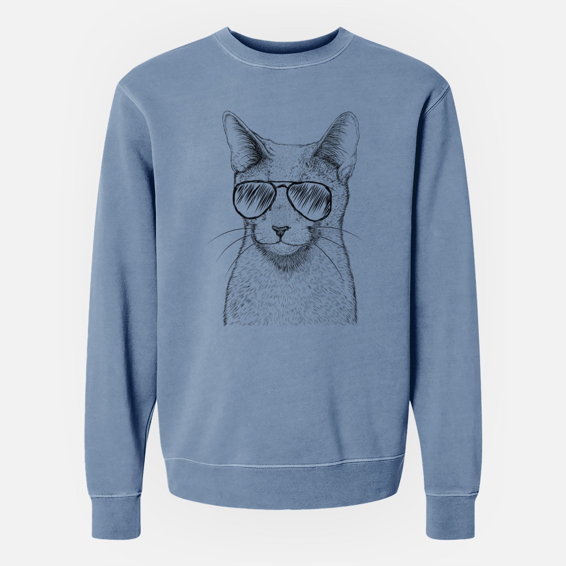Aviator Blue the Russsian Blue Cat - Unisex Pigment Dyed Crew Sweatshirt
