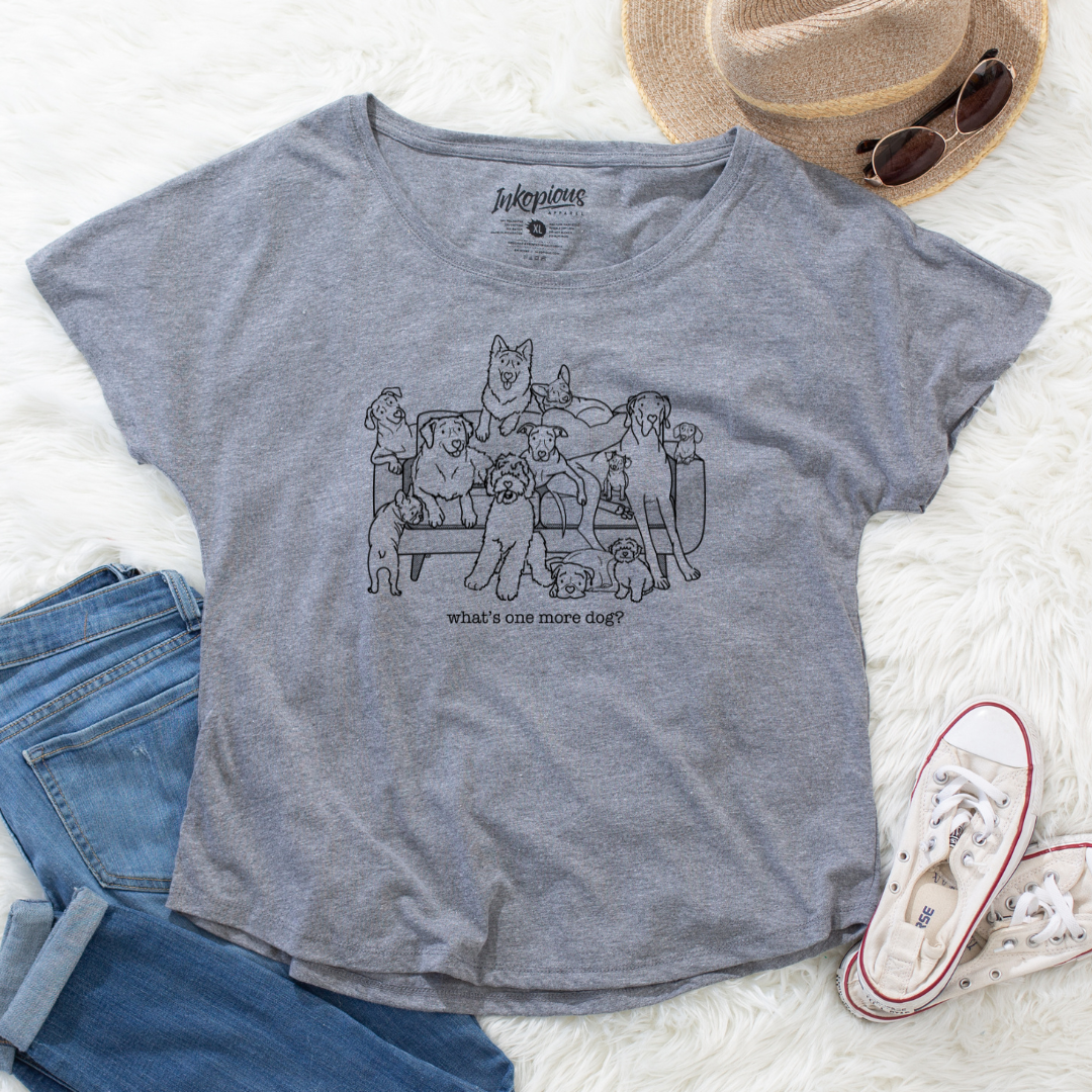 WOMEN'S DOLMAN - Only size XL available. This tri-blend Dolman features a scoop neck and a curved hem. It is a relaxed fit and meant to hang off the shoulder. The 4.3 oz tri-blend material is super soft and composed of 50% polyester/25% cotton/25% rayon.