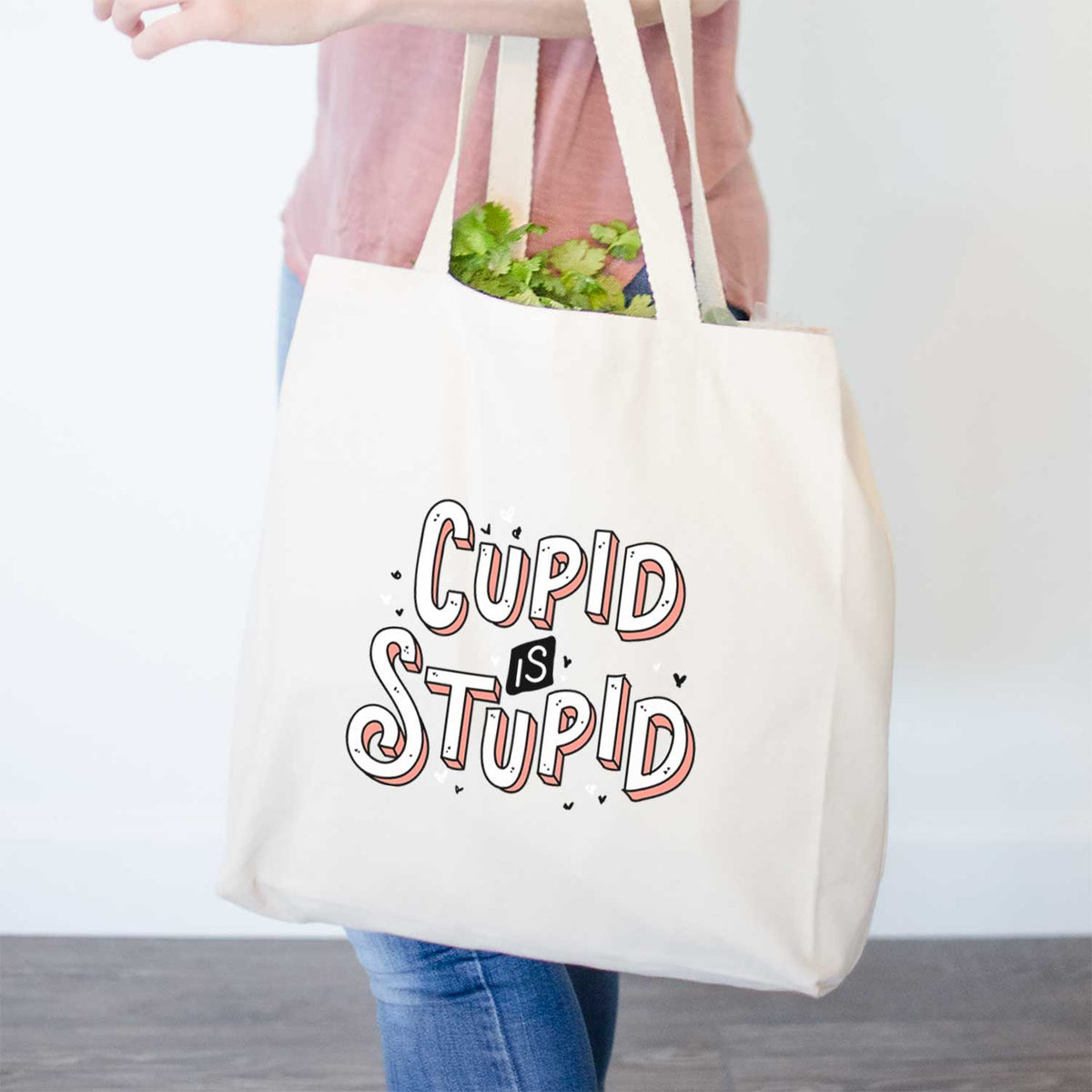 A stylish and trendy alternative to the old brown paper bag, this Cupid Is Stupid tote bag will have other shoppers in line asking you where you got it!