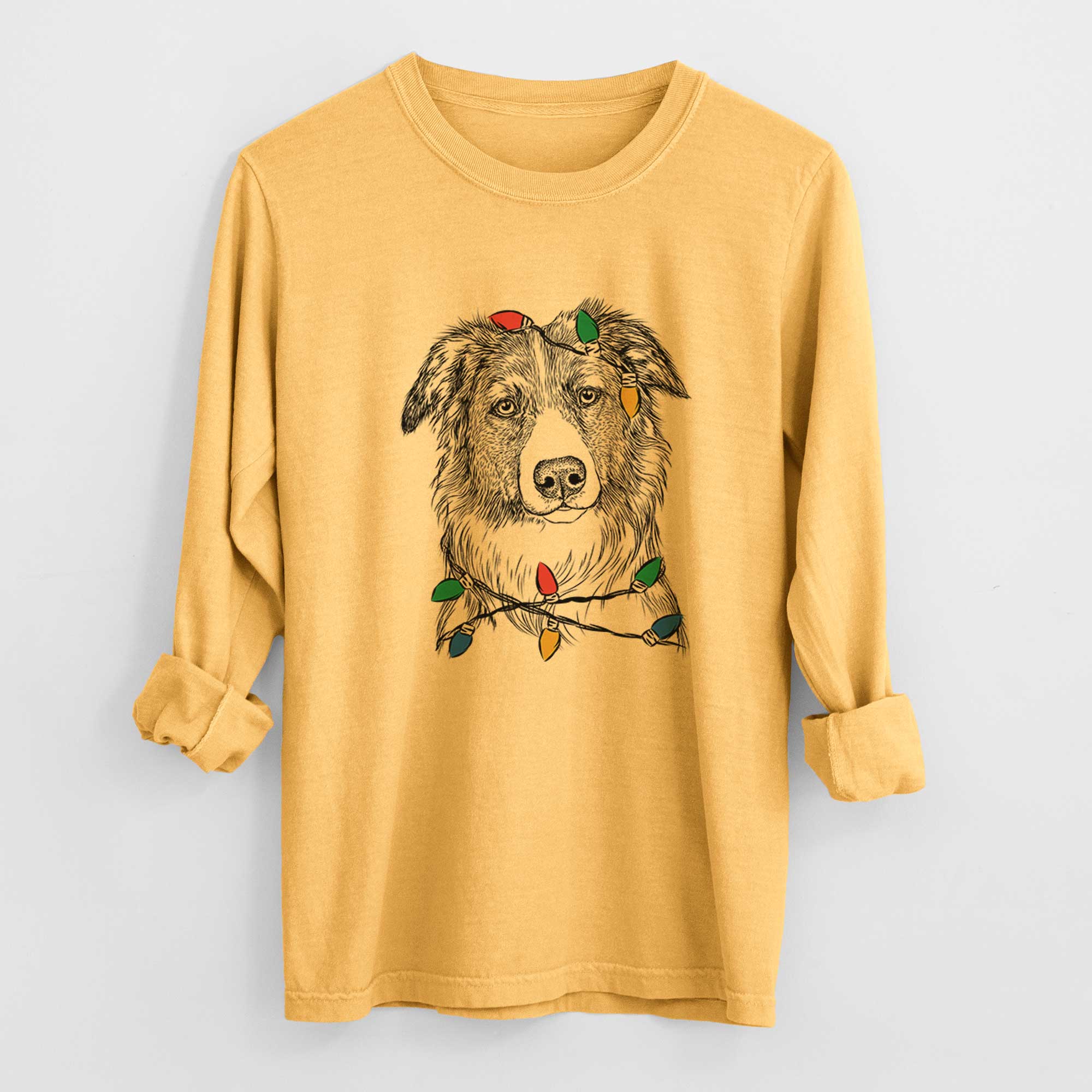 Christmas Lights Cynder the English Shepherd - Heavyweight 100% Cotton Long Sleeve